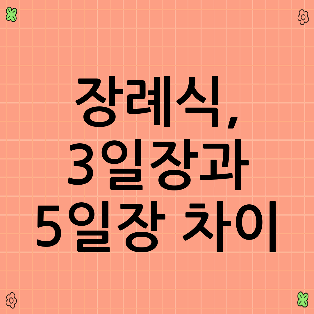 3일장과 5일장의 가장 큰 차이점은 장례 기간입니다. 3일장은 말 그대로 3일 동안 치러지는 장례이며, 5일장은 5일 동안 진행됩니다.