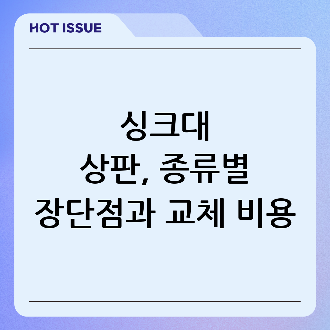 주방은 집안에서 가장 중요한 공간 중 하나이며, 싱크대 상판은 주방의 기능성과 디자인을 결정짓는 핵심 요소입니다. 싱크대 상판은 단순히 음식을 준비하는 공간을 넘어, 주방의 전체적인 분위기를 좌우하는 중요한 요소입니다. 다양한 소재와 디자인의 싱크대 상판이 존재하기 때문에, 각각의 장단점을 꼼꼼히 비교하고 자신의 라이프스타일과 예산에 맞는 최적의 제품을 선택하는 것이 중요합니다. 이 글에서는 다양한 싱크대 상판의 종류별 특징과 장단점, 교체 비용, 그리고 관리 방법까지 상세하게 안내하여 여러분의 현명한 선택을 돕겠습니다.