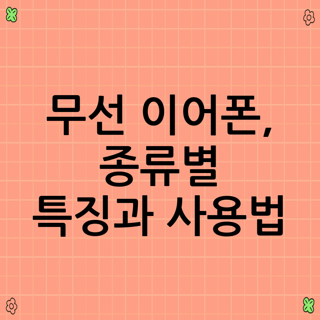 무선 이어폰 완벽 가이드: 종류별 특징과 사용법, 숨겨진 꿀팁까지!
