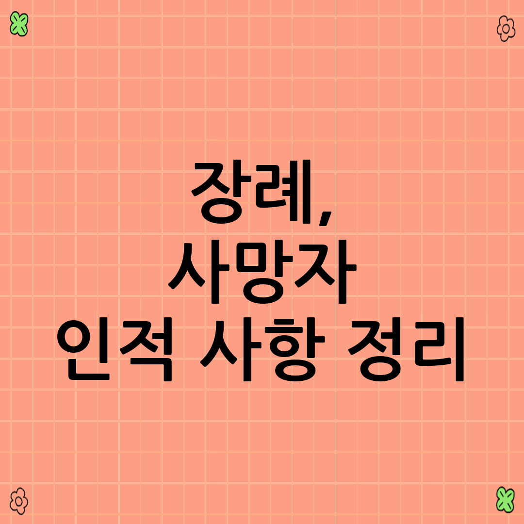 사랑하는 사람을 떠나보내는 것은 인생에서 가장 힘든 경험 중 하나입니다. 갑작스러운 슬픔 속에서 장례 절차를 준비하고, 복잡한 행정 절차를 처리해야 하는 어려움에 직면하게 됩니다. 이 글에서는 장례 절차를 차근차근 안내하고, 사망자 인적 사항 정리부터 장례 후 행정 절차까지 필요한 모든 정보를 제공하여, 슬픔을 조금이나마 덜고 고인을 평안하게 보내드릴 수 있도록 돕고자 합니다.