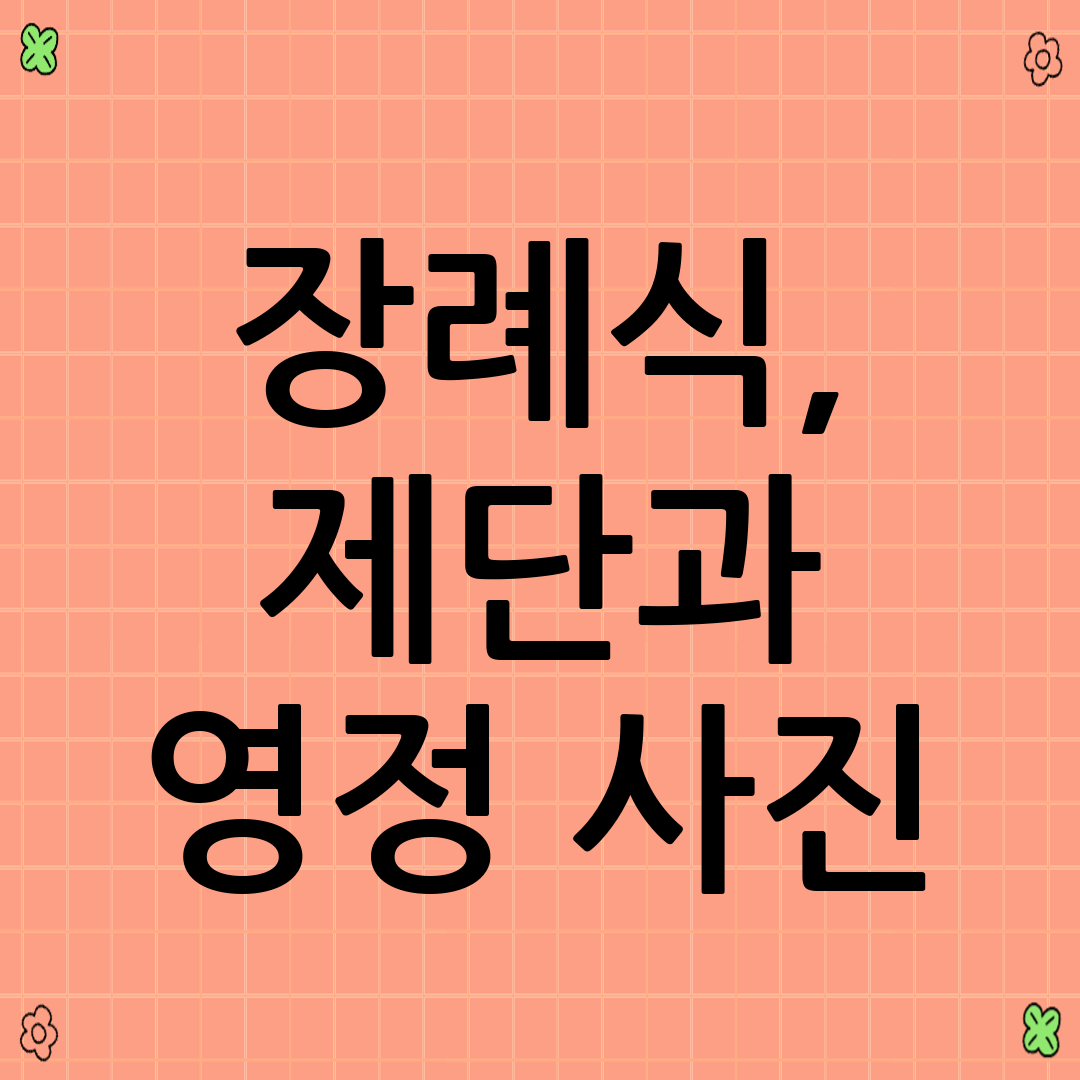 장례식 제단과 영정 사진은 고인을 추모하고 기억하는 데 중요한 역할을 합니다. 정성껏 준비된 제단과 영정 사진은 고인에 대한 존경과 사랑을 표현하는 방법이며, 참석자들에게 위로와 격려를 전하는 역할을 합니다. 이 글에서 제시된 정보들을 바탕으로, 고인의 삶을 기리고 추억하며, 아름다운 기억을 만들어가는 장례식을 준비하시기 바랍니다.