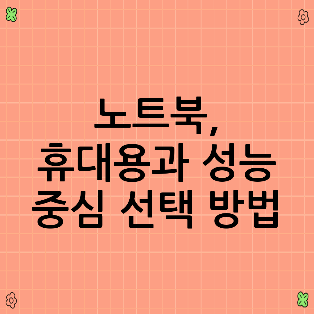 노트북을 구매할 때 가장 먼저 마주하는 고민은 휴대성과 성능 사이의 선택입니다. 어떤 노트북이 나에게 적합할까요? 이 글에서는 휴대성과 성능이라는 두 가지 핵심 요소를 중심으로 노트북 선택 방법을 자세히 안내합니다. 다양한 사용 목적과 예산을 고려하여 최적의 노트북을 선택할 수 있도록 돕겠습니다. 최신 정보와 실질적인 조언을 담아 여러분의 현명한 선택을 지원하겠습니다.